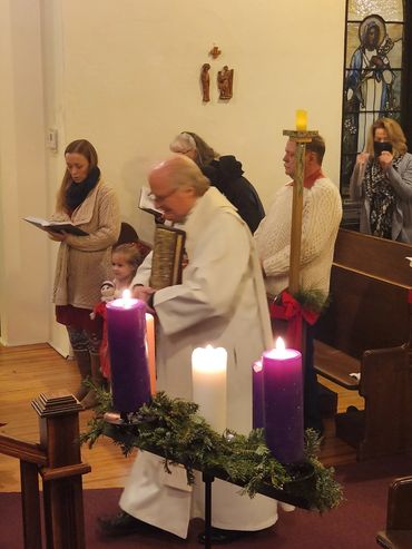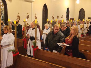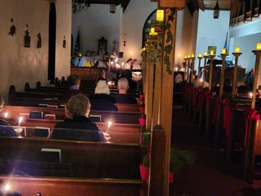 Jeff McQuaid performs a bagpipe Christmas rendition before Christmas services.